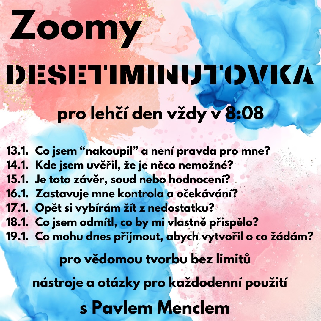 "V úterý 13.1. začínáme tvořit návyky! Ty vědomé, které fungují pro naše tělo, budoucnost, podnikání, vztahy a další oblasti života. Připravil jsem si pro vás program takzvaných "DESETIMINUTOVEK" - 7x ZOOM na 10 minut, kde budeme prakticky používat nástroje na každodenní životní rutinu. Témata jsou více než "šťavnatá":